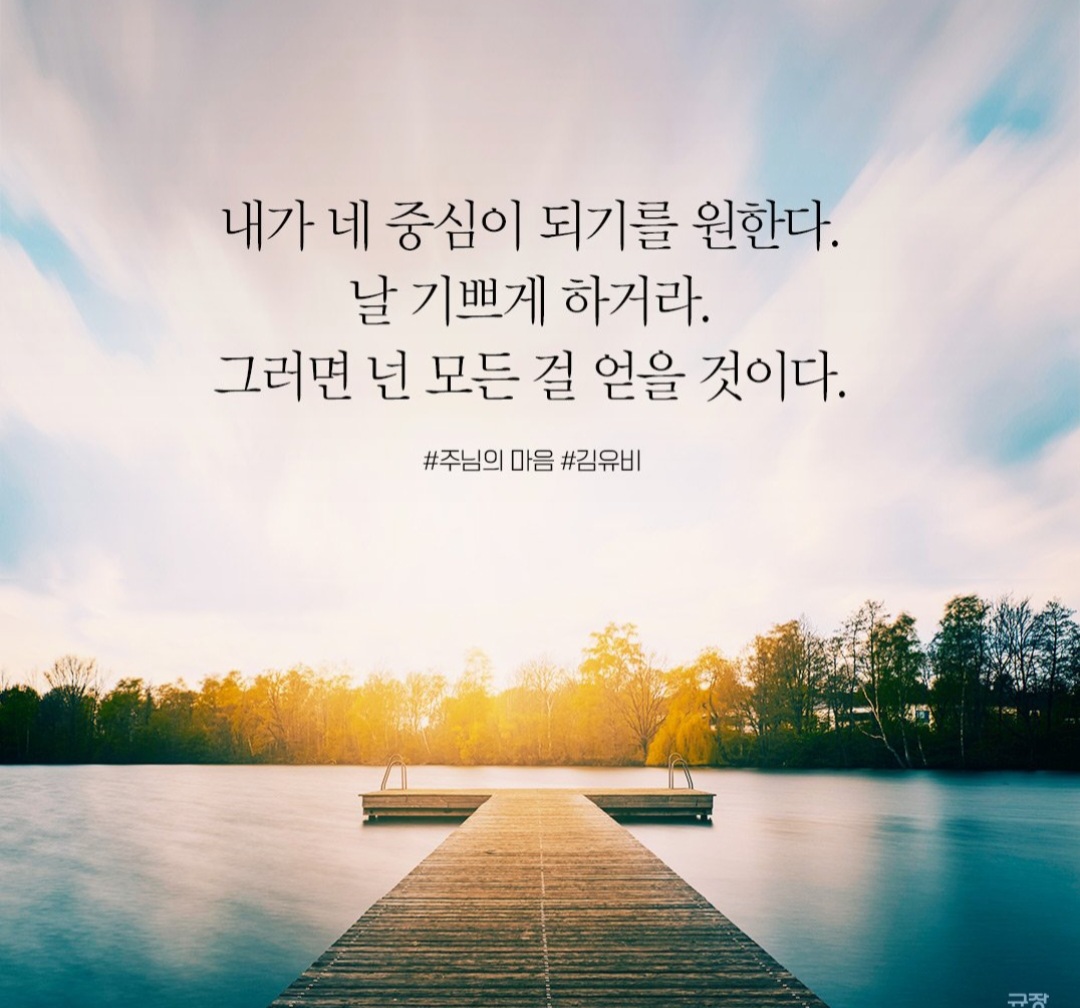 네가 원하는 일을 과감하게 시도하렴 ⠀ 나의 자녀야, 네가 원하는 일을 과감하게 시도하렴. 내가 널 기꺼이 도와 줄 거란다. ⠀ 겁을 먹고 멈춰 서서 아무것도 시도하지 않으면 아무 일도 일어나지 않는단다. ⠀ 새로운 일을 시작하기 전에 넌 온갖 의심과 회의에 사로잡힐 거야. 부정적인 결론을 내리고 위축되지 말거라. ⠀ 진심을 담아 최선을 다하고, 결과는 차분하게 지켜보거라. ⠀ 부족한 게 있다면 개선해서 더 나은 것으로 만들어라. ⠀ 난 네가 처음부터 완벽하기를 바라지 않는단다. 넌 과정에 있단다. ⠀ 네 인생을 성공과 실패로 나누지 말거라. ⠀ 실패의 절망이나 성공의 희열은 잠시 왔다 사라지는 안개란다. ⠀ 내가 네 중심이 되기를 원한다. 날 기쁘게 하거라. 그러면 넌 모든 걸 얻을 것이다. ⠀ 사랑한..
